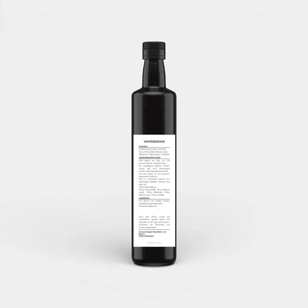 Tausendguldenkraut, Enzianwurzel, Bitterer Fenchel, Schafgarbenkraut, Brombeerblatt, Queckenwurzel, Demutkraut, Minzkraut, Brennesselblatt, Wegwartekraut, Walnussblatt, Passionsblumenkraut, Erdbeerblatt, Salbeiblatt, Hanfblatt, Lavendelblüte, Frauenmantelkraut, Melissenblatt, Bitterkleeblatt, Nelkenwurzel)